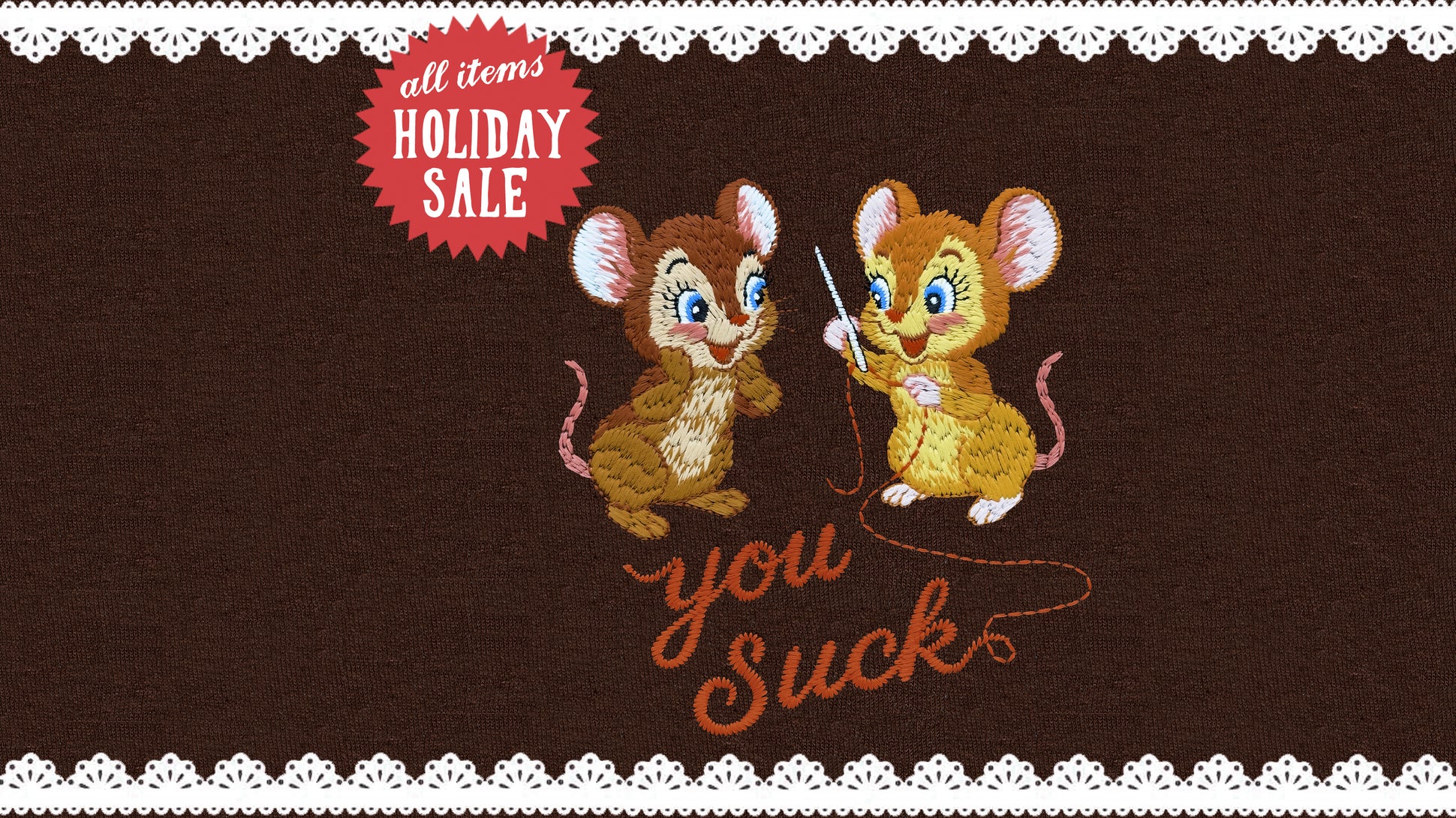 Move over! Make way! Coming through! Get ready! Ooooooh, shit! Here we come! The holy queens of embroidery! Hahaha! You know, we just fucking LOOOOOOVE creating embroidered tops with really really mean and rude sayings with a ton of swearwords and then add a whole bunch of cutesy lil’ animals to it, like white rabbits and bluebirds and fat hamsters, with some fresh flowery vintage elements and bows and shit....and Omigosh so kitsch and SO cute now!