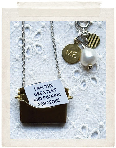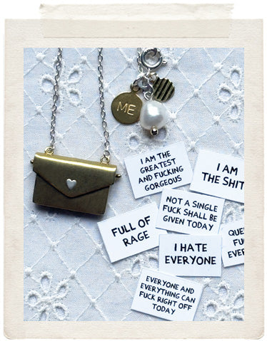 Ooooooooooh!!!! Look at all these exchangeable little messages!!! How completely awesome! Change it daily depending on your mood! Nobody will ever know what’s inside. Remind yourself how amazing you are with the “I am the greatest and fucking goergeous” or wear the “Everyone and everything can fuck right off today” at work. Haha! We won’t tell a soul. Your secret is safe with us. Promise. You will receive ALL the 7 messages shown here....This dainty sterling silver necklace is made in Paris, just for you.♥