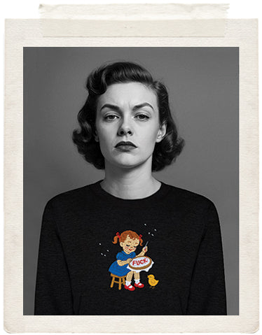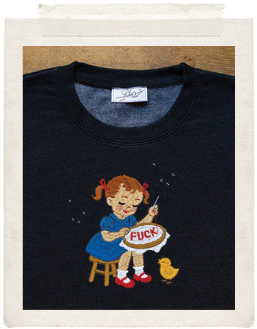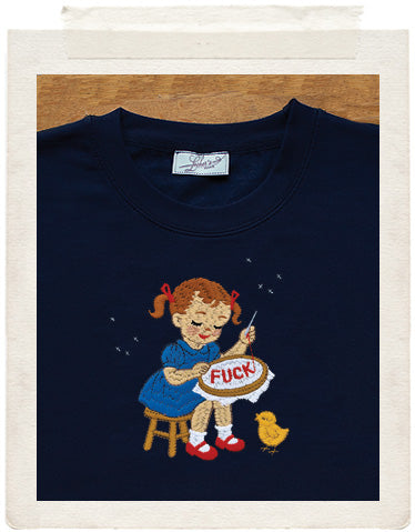 A dainty little FUCK stitched with love and probably caffeine or something else. It’s giving cottage core meltdown. Wear it to brunch or therapy- works both ways. Delicate stitchwort. Timeless craftsmanship. This sweater says FUCK so you don’t have to. Perfect for when life gives you lemons....or people.