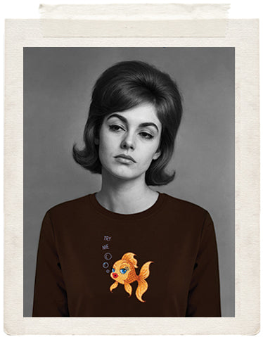 “TRY ME” says the goldfish that’s 5cm of pure audacity. Perfect for when you wanna look adorable but secretly hope someone fucks around and finds out. Wear this sweater when you’re feeling cute but ready to start a fight with someone that deserved it....