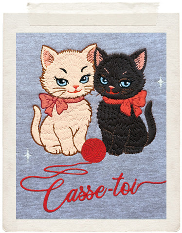 CASSE-TOI means "fuck off" in French....Translation: take your drama elsewhere, darling. The cats have spoken and they’re so over it....but make it in French, so it’s classy and chic. Perfect for anyone who’s too cute to deal with anyone’s bullshit……Embroidered sass, approved by cats everywhere.