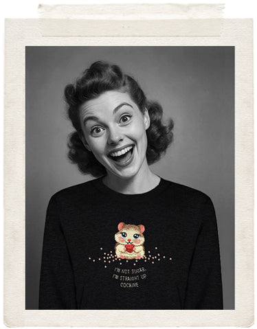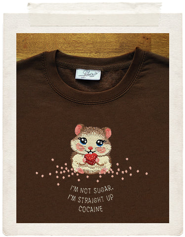 Sweet? Fuck no. Cuddle-core meets cocaine energy. This hamster is here to remind everyone that beneath your soft exterior lies the spirit of a caffeinated menace that serves chaos. Wear responsibly (or don’t, we’re not your mom).