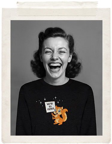 For days when optimism is dead and caffeine’s the only thing keeping you going. This sweater says what we’re all thinking - with a cute face and a middle finger in spirit. Wear it loud, laugh through the chaos and let this cheerful little doomsayer speak for us all.